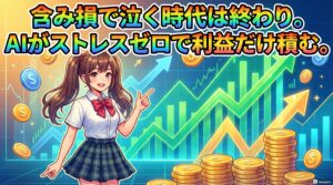 たとえば、価格が急落した際に人間なら恐怖から売ってしまうところを、AIは「買い増しチャンス」と判断し、後にリバウンドで利益を確保します。